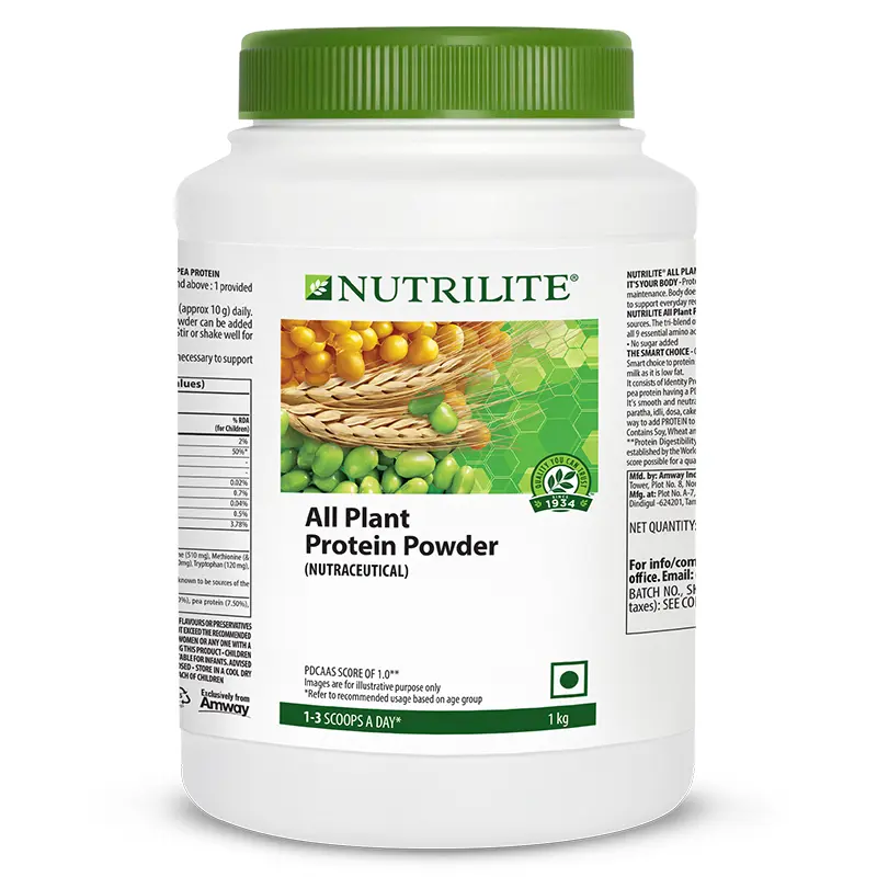 - Due to a hectic lifestyle and poor eating habits, many of us may be lacking the required protein in our everyday diet. Amway Plant-based Nutrilite All Plant Protein powder is a protein supplement that along with a regular diet can help in bridging the protein gap in everyday diet, at a good price. Amway plant-based Nutrilite All Plant Protein Powder, is your everyday diet’s best friend.